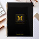 Agenda Nome do Monograma Dourado preto clássico