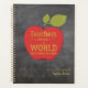 Elegante planejador de na moda com script de tipografia de folhas de ouro de professores citando "Professores mudam o mundo um aluno de cada vez", dentro uma grande maçã vermelha, nome personalizado e título +++++++++++++++ Pode ser um presente de manobras atencioso para expressar sua gratidão e apreço e dizer obrigado para seu melhor professor!