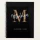 Planeador de Nomes de Script de Menino Dourado Negra Moderno, Girly Monogramas. Personalize facilmente este moderno planejador elegante com o seu monograma e nome personalizados.