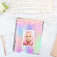 Um fundo colorido do arco-íris em roxo, rosa com pingos elegantes e roxos, pintura pingando. Personalize e adicione sua própria foto, nome e um ano. O nome é escrito em cinzas com um grande estilo escrito à mão com traços. Para manter as hastes, exclua apenas o nome da amostra, deixe os espaços ou emoji na frente e depois do nome. Perfeito para escola, trabalho, negócios ou organização da sua vida pessoal/familiar.