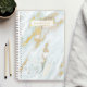 Agenda Nome Personalizado de Marble Azul e Dourado