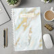 Aumente sua organização com este planejador personalizado de nome azul e dourado. Perfeito para as mulheres que apreciam designs luxuosos e modernos, esse planejador combina a elegância do mármore com a funcionalidade prática. O padrão de mármore azul-chic e dourado adiciona um toque de sofisticação ao seu planejamento diário. Personalize-o com o seu nome para um planejador de na moda verdadeiramente único.