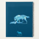 Um lobo azul estilizado (Canis lupus) lança uma sombra enquanto atravessa o terreno nevado. Há dois lugares para você adicionar seu próprio texto.