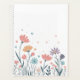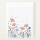 Um delicado arranjo floral ao estilo aquarela em pastéis macios e mudados consome este cobrir notebook. Pinças suaves, pêssegos, blues suaves, lavandas e laranjas claras florescem ao longo de caules finos e escuros contra um fundo branco limpo. Minúsculos corações, estrelas e pontos flutuam acima das flores, criando um design leve, alegre e caprichoso perfeito para registrar, tomar nota ou dar aos amantes florais e naturais.