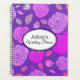 Este notebook planejador é mostrado com um impressão floral rosa e fundo de púrpuras brilhantes e uma mistura de cores coordenadoras. Nome personalizado para personalizar para o seu dentro um oval branco com duas bordas coloridas cordiais na frente. De trás da mesma cor e impressão floral. Personalizar este item ou comprar como está. faça o stock da imagem por Freepik.com