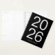 Crie seu próprio planejador decorativo 8,5x11 personalizado para acompanhar reuniões e projetos de negócios. O fundo preto sólido pode ser mudado para sua cor favorita. Personalize o estilo de fonte, o tamanho e a cor branca modernos. Dar estes planejadores a funcionários, clientes e colegas para mostrar apreciação e fortalecer conexões. Peça o seu hoje e comece a planejar em estilo!