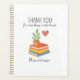 Ajude seu professor favorito a se organizar em estilo com este obrigado lindo que você planeja! Apresentando um design de aquarela quente de livros empilhados, uma planta cercada, e um coração vermelho, juntamente com a mensagem pensativa "Obrigado por Ensinar com Coração", este planejador é prático e significativo. Perfeito para planejamento de lições, listas de tarefas, reuniões ou diários, este planejador personalizável faz um excelente presente para a Semana de Apreciação do Professor, as celebrações de volta à escola ou de fim de ano. Acrescente o nome do professor ou uma mensagem curta para torná-lo realmente pessoal. Recursos do produto: Disponível em vários tamanhos e layouts (semanal, mensal ou diário) Enlace espiral resistente e design de cobrir de cor de Cheio de cobrir durável com texto personalizável O interior inclui calendários, notas e seções de planejamento Ideal para professores, tutores, mentores ou funcionarios escolar Um presente funcional e inspirador que os professores usarão todos os dias - uma combinação perfeita de propósito e apreciação.