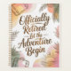 Plan your next adventure in style with this elegant retirement planner featuring the uplifting phrase Officially Retired – Let the Adventure Begin.