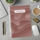 Organize-se em estilo com este elegante planejador personalizado com um design de onda rosa de ouro mesmerizante. Os sotaques metálicos adicionam um toque de glamour ao seu planejamento diário. Perfeito para rastrear compromissos, metas e listas de tarefas, este planejador deve mantê-lo inspirado e motivado.