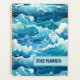 Ondas bonito do oceano azul rolam e caem pela frente e atrás deste cobrir do planejador (frente e trás). Personalize-o com o ano.