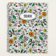 Joyful Planner for a bright Year - Flower Pattern orange Swirl Berry on a white Background Design é desenhado à mão e mostra um padrão floral repetitivo sem descontinuidades com folhas verdes e bagas de laranja redondas. As principais cores neste padrão são verde, amarelo, laranja, branco. Você pode personalizar o texto "20XX" com o ano atual ou seu nome na Seção Personalizar