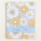 Introducing this personalized planner cover featuring a mesmerizing retro bohemian daisy graphic design in light blue, gold, and white. This planner is a perfect blend of artistry and functionality, promising you a unique and stylish experience whether you're working or playing.
