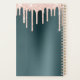 Peach Espumante Glitter Drips em um fundo brilhante verde-caçador. Planner de casamento tem um lugar para você personalizar com seus nomes e data de casamento. Também poderia ser usado como planejador anual de trabalho ou qualquer outra coisa que você tenha que planejar!