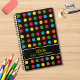 Organize o seu ano com este planejador de cobrir flexível personalizado, com duas áreas de texto personalizáveis para seu nome e escola ou ano acadêmico "20xx-20xx Planejador". O vibrante padrão vermelho, azul, verde, amarelo e laranja de bolinhas em um fundo preto elegante adiciona um toque divertido e colorido. Perfeito para estudantes, professores, ou qualquer pessoa que esteja à procura de um estilo. Personalize-o para um planejador funcional exclusivo