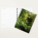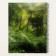 Foto da floresta pitoresca de samambaias e suas frondes e troncos longos, verdes e luxuosos brilhando pela cobertura das plantas. Há texto personalizado para algumas palavras, assim como para o ano do planejador.