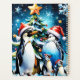 Pinguins bonitos num estilo animado, todos vestindo chapéus festivos de Papai Noel. Eles ficam em volta de uma magnífica árvore de Natal decorada, decorada com ornamentos coloridos em várias formas e tamanhos. Uma grande estrela ouro brilha no topo da árvore, dando a toda a imagem um brilho festivo. Esta design capta a essência do Natal de uma forma brincalhona, transmitindo um sentimento de calor, alegria e comunidade no meio de uma paisagem vinícola.