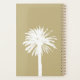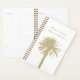 O livro tradicional do planejador de casamento da praia com o calendário. Design de modelo elegante com silhueta de palmeira. Parte do jogo de correspondência para a festa de casamento de verão/destino. Dourada espiral colorida com impressão de areia bege.