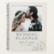 Planeador de casamento simples, elegante e vintage de flor selvagem, com um sofisticado lugar floral azul e azul-poeirento e foto do casal.