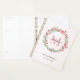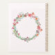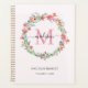 Este planejador personalizado cor-de-rosa-pincelado apresenta uma camada de aquarela com flores roxas e roxas e folhas verdes. Personalize com seus próprios detalhes. Ao adicionar seu nome, insira entre as duas caixas.
