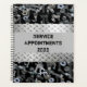 Este design fabuloso, gerado por computador, apresenta camadas de parafusos e loucos e pinos e lavadores, fazer excelente para o seu manual ou mecânico favorito. Inúmeras sombras de cinza e prata descansam em um pano de fundo preto neste design decididamente "masculino". Para este maravilhoso planejador, o design foi modificado para incluir duas faixas de "losango plating" que enquadra a área de texto: "Service Apponments" (Compromissos de Serviço) e "2022" podem (ou podem) ser modificadas para melhor se adequarem às suas necessidades. O verso do planejador é preto simples, para se coordenar com o fundo do design, mas oferece várias oportunidades de personalização ou identificação.