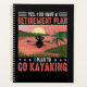 Camiseta design caiaque engraçada e humorada e outros itens perfeitos para qualquer um que ama caiaque, mostra uma caiaque fêmea relaxando em seu caiaque na água e texto que lê Sim Eu tenho um plano de aposentadoria. Planejo ir a Kayaking!
