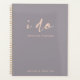 Um planejador de casamento na moda com a tipografia escrita à mão "Eu faço", emparelhada com o título da tipografia moderna, noiva e nomes de noivas, em cor-de-rosa-claro, num fundo de cinza lilás macia.