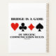 Mostre sua ponte tortuosa/lado de ponte duplicada com este planejador que apresenta os quatro naipes de placa junto com o seguinte truísmo de ponte dizendo "Bridge Is A Game Of Specific Comunicação Rules" (A ponte é um jogo de regras específicas de ).