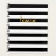 Livro de compromisso personalizado listrado preto e branco. O texto Dourado pode ser personalizado.