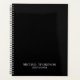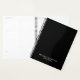 O planejador profissional apresenta o nome personalizado e o texto no estilo de fonte de serif clássico branco em fundo preto.