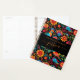 Moderno planejador de receitas de 3 anéis com um nome de script feminino laranja em um padrão floral mexicano. Personalize com seu nome no cobrir.