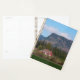 Um celeiro vermelho rústico parece pequeno contra o Monte Enumclaw perto de Cumberland, Washington.