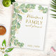 Crie um planejador de refeições da família personalizado com um design botânico elegante que apresente um eucalipto de aquarela verde. Você pode usar a modelo para digitar seu nome de família e anos.