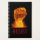 O planejador temático da justiça social apresenta grande punho de fogo e chamas com texto personalizável "RESIST" em vermelho e moderno em fundo negro.