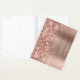 As luzes brilhantes cintilantes e as luzes brilhantes de ouro-rosa escuro realçam na borda esquerda sobre uma fina lâmina cor-de-rosa e uma folha de metal esfregada de rosa dourada. A assinatura feminina moderna apresenta uma fonte elegante de caligrafia com caudas decorativas. Personalize os estilos de fonte para criar seu próprio planejador de tamanho padrão grande para o presente de sua filha de volta para a escola.