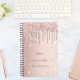 Um fundo rosa dourado com ouro rosa elegante e brilho fino prateado, pintura pingando. Modelo por um ano. Personalize e adicione um nome. O nome é escrito em ouro rosa escuro com um grande roteiro de estilo, escrito à mão, com baloiços. Perfeito para a escola, o trabalho ou a organização da sua vida pessoal/familiar. Para manter as hastes apenas apague o nome da amostra, deixe os espaços ou emoji em frente e depois do nome