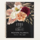 Livro de núpcias russo, boho, elegante e romântico negro, burgundy e terracotta com flores de aquarela adoráveis e grama de pampas.