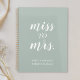 O caderno de planejadores de casamento personalizado com o design de guião moderno "Miss to Mrs" em fundo verde de sábio.