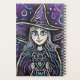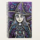Este planificador branco apresenta uma vibrante pintura a óleo de uma bruxa embaçada.