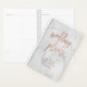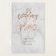 Este elegante e moderno planejador de casamento mostra a tipografia de ouro rosa em um fundo de mármore.