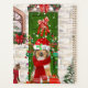 Sheltie Dog Natal sentado do lado de fora da casa decorada com coroa de Natal, árvore de Natal é uma ideia perfeita de presente de Natal para amantes de cachorros.