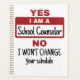 Um presente de aconselhamento engraçado para conselheiro do meio ou segundo grau. Design diz: Sim, sou conselheiro escolar, não vou mudar o seu horário. Design de novidade para assessor escolar é um presente de apreciação de excelentes para o final do ano ou Semana Nacional de Conselheiros Escolares. Excelente de volta para a design da escola para feliz 1rua dia de escola.