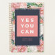 Um bom planejador de citações motivacionais para mulheres. Citação inspiradora que diz "Sim, você pode". Cercado por florais de aquarelas sobre fundo azul-marinho. Personalize este design personalizado com seu próprio nome, texto e ano.