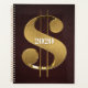 Um sinal dourado e ousado em 3D torna isto um planejador de excelente para todas as suas ideias, notas e orçamentos monetários. Personalize-o com o ano, seu nome ou negócio.