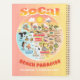 Um espetacular desenho do sul da Califórnia - mostrando Los Angeles, Orange County, San Diego. Esta cena brilhante e encantadora tem tudo - uma surfista pendura dez enquanto uma peça de casal na água, uma baleia assassina salta, um casal de praia muscular ambos flex para impressionar, animais de zoológico esperam por turistas, um t-rex lança um desafio, tudo sob o brilhante sol da Califórnia brilhando acima de tudo.