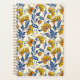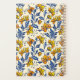 Seamless pattern of orange and yellow flowers with blue leaves on a beige background. The floral motif creates a lively, cheerful tone.