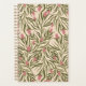 Seamless repeating pattern featuring stylized pink bell-shaped flowers interspersed with flowing, dark green foliage against a pale cream background.