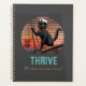 Black Cat Sunset: Uma Viagem para THRIVE Planner: Um gato preto vestindo o chapéu de um capitão e parado no arco de um navio, navegando em um vibrante pôr do sol.
