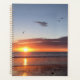 Sunset na praia de Lua, com gaivotas voando ao redor da lua. San Diego, Califórnia.