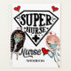Uma citação médica fofinha e atraente escrita no meio de uma leitura de diamante, super enfermeira, que tem corações de rabisco vermelho agudos borrado com preto; uma enfermeira afro-americana e uma ilustração de enfermeira caucasiana branca em torno dela. Um modelo para o nome das enfermeiras aparece na parte inferior e pode ser personalizado para atender às suas necessidades. São ideais para equipes de enfermagem; enfermeiros registrados; formandos de enfermagem e qualquer um que ama sua profissão e uma xícara de chicória quente.