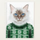 Esta bela ilustração com aquarelas é de um gato de Pássaro Longhair em um suéter de Natal feio.